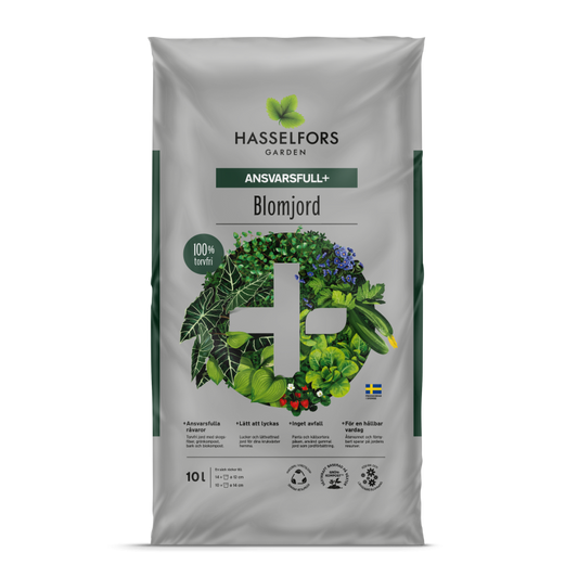 Hasselfors Ansvarsfull + Torvfri Blomjord 10 liter, 66st, Halvpall - Fraktfritt
